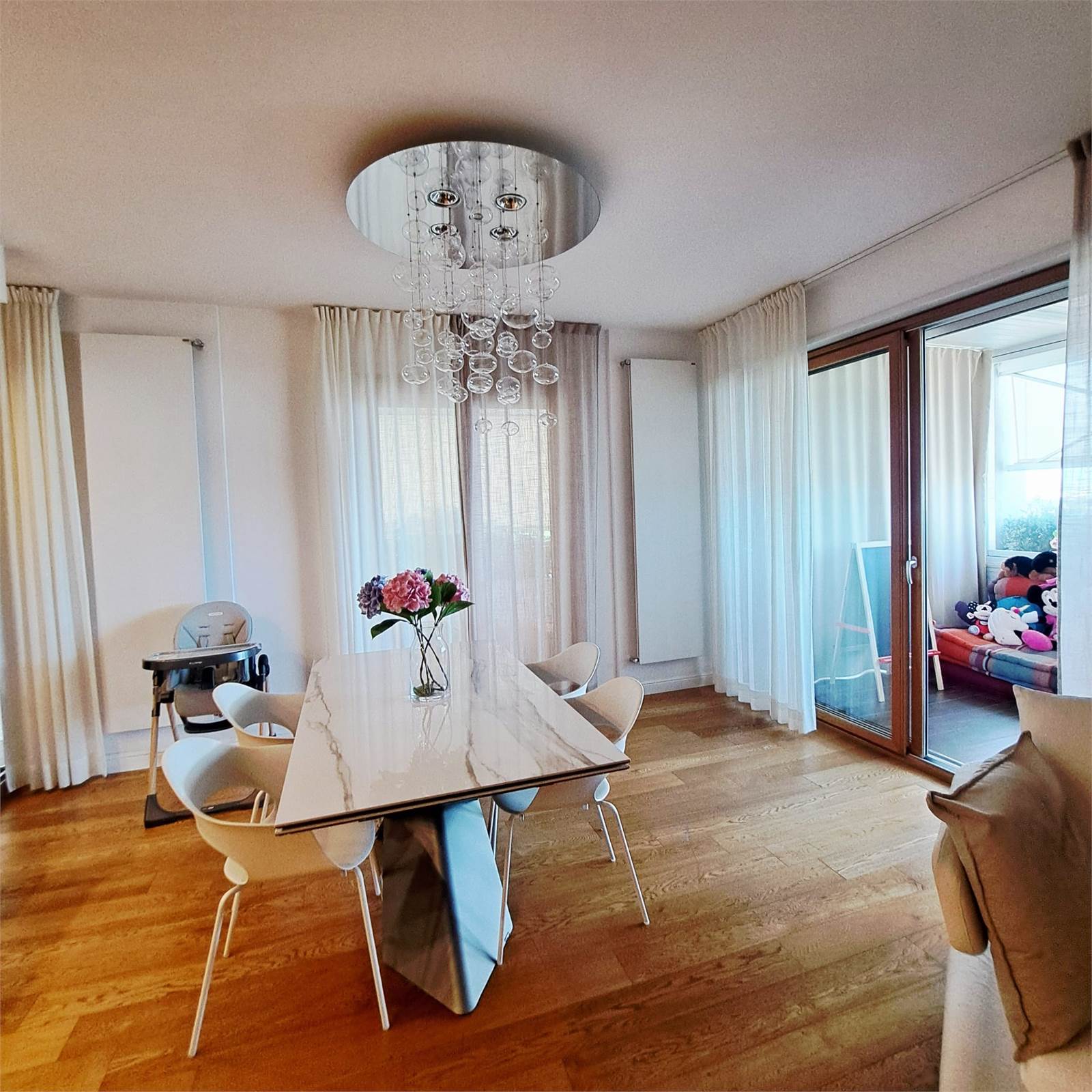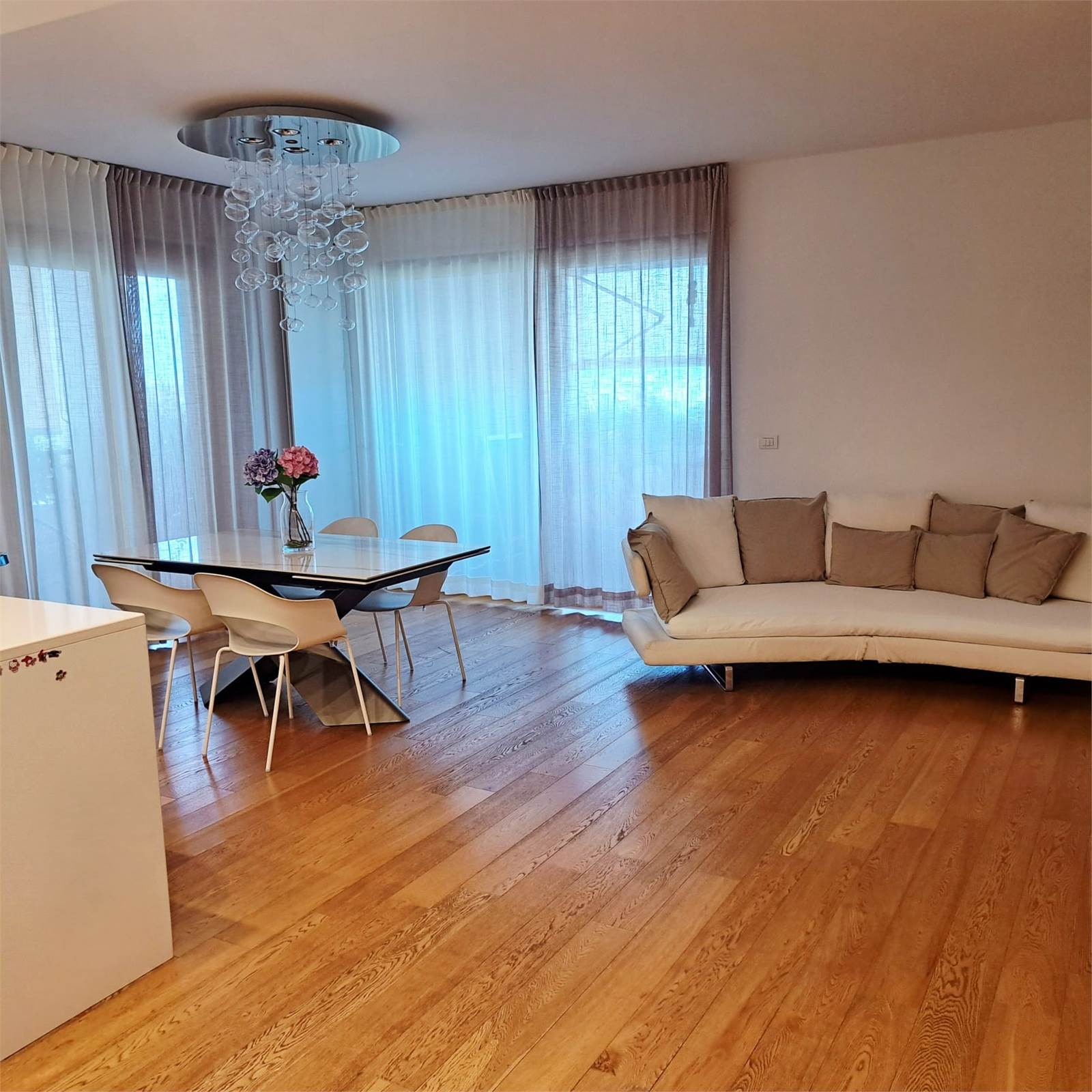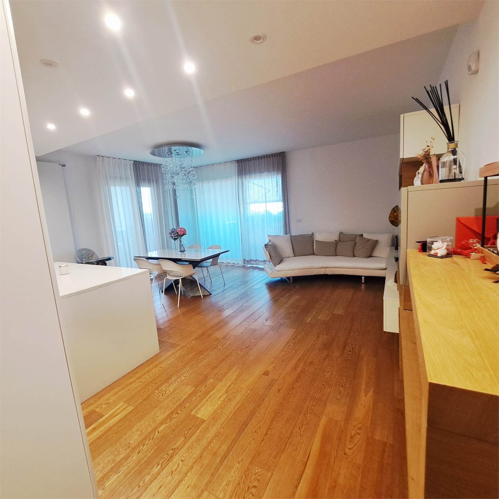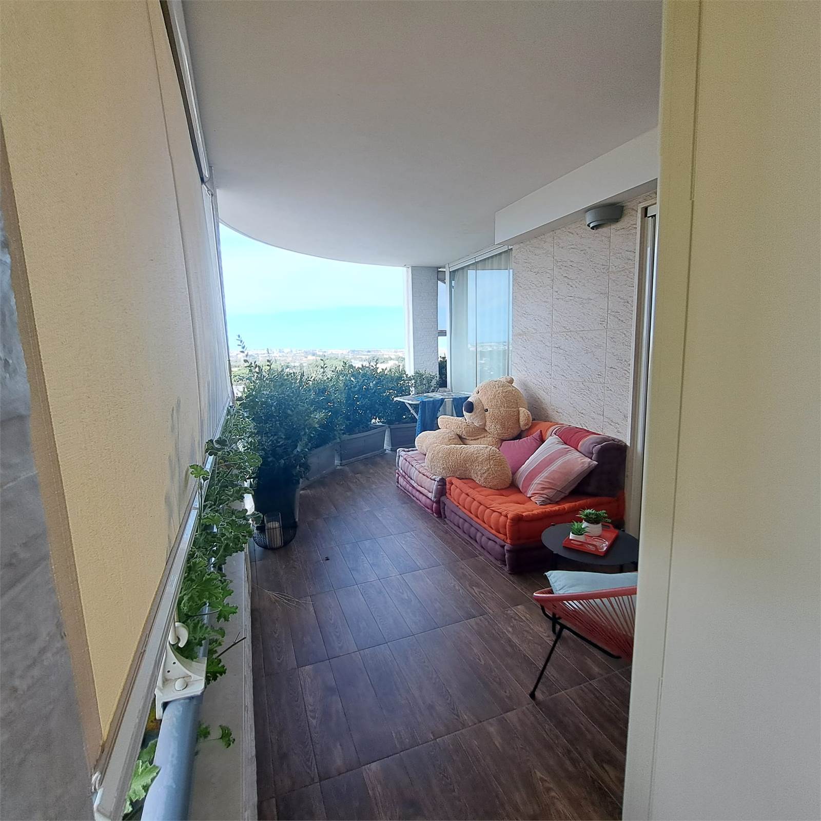 In esclusiva zona residenziale, all’ottavo piano di un elegante stabile dei primi anni 2000, proponiamo rifinitissimo e super accessoriato appartamento di circa 115 mq, impreziosito da un ampio balcone terrazzato panoramico, in parte chiuso con veranda VEPA, che crea un ulteriore e confortevole ambiente vivibile tutto l’anno, dotato di riscaldamento e raffrescamento.