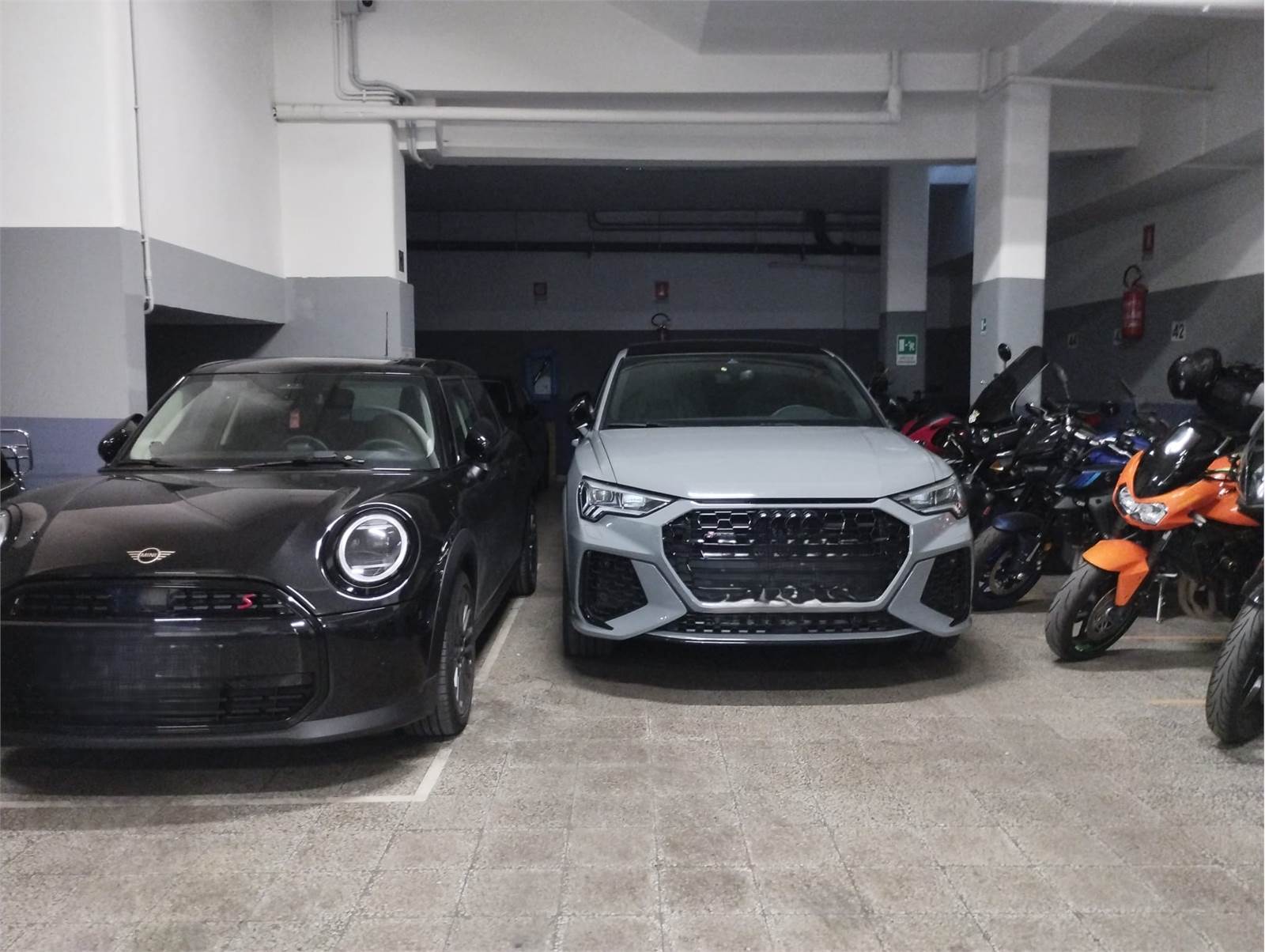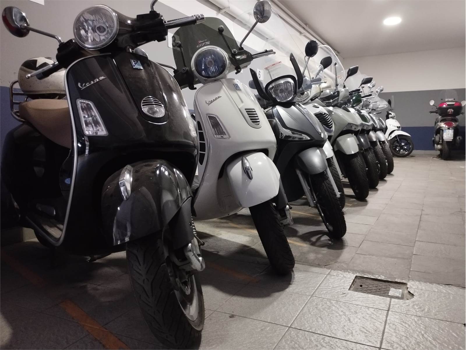 L’autorimessa dispone di circa 55 posti auto e 60 posti moto, garantendo un’elevata capienza.